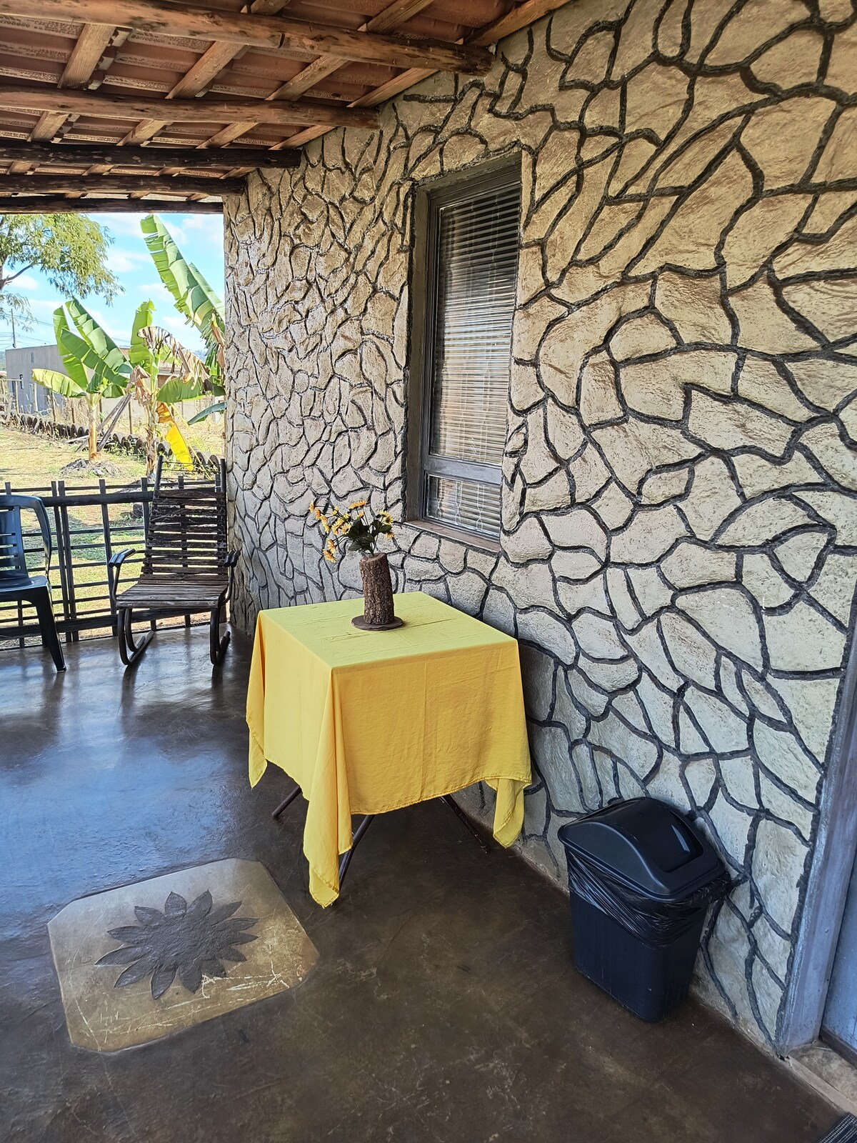 Chalé Girassol – Simples, funcional e com toque solar! No quarto: - Cama de casal com roupas de cama e toalhas - Disponibilidade de itens básicos de cozinha - Fogão elétrico de 2 bocas e geladeira - Itens básicos de higiene - Ar- condicionado - Chuveiro quente - Wi-Fi de alta velocidade - Varanda e vista para a piscina Área de Lazer - Churrasqueira móvel - Área externa com estacionamento - Piscina com luz de LED e hidromassagem - Balanço namoradeiro. - Caramanchão com Deck de Cobertura