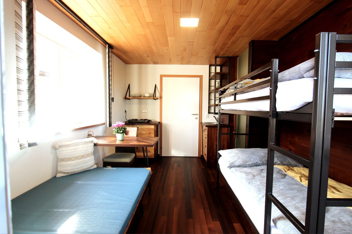 La maison d'hôtes "Unser Großer Tiny House" est située à Mayrhof et impressionne les hôtes avec sa vue sur les montagnes. La propriété de 48 m² se compose d'un salon, d'une cuisine entièrement équipée avec lave-vaisselle, de 3 chambres et d'une salle de bain et peut donc accueillir six personnes. Les équipements supplémentaires comprennent un Wi-Fi haut débit (adapté aux appels vidéo), une smart TV avec services de streaming, un ventilateur ainsi que des livres et jouets pour enfants.