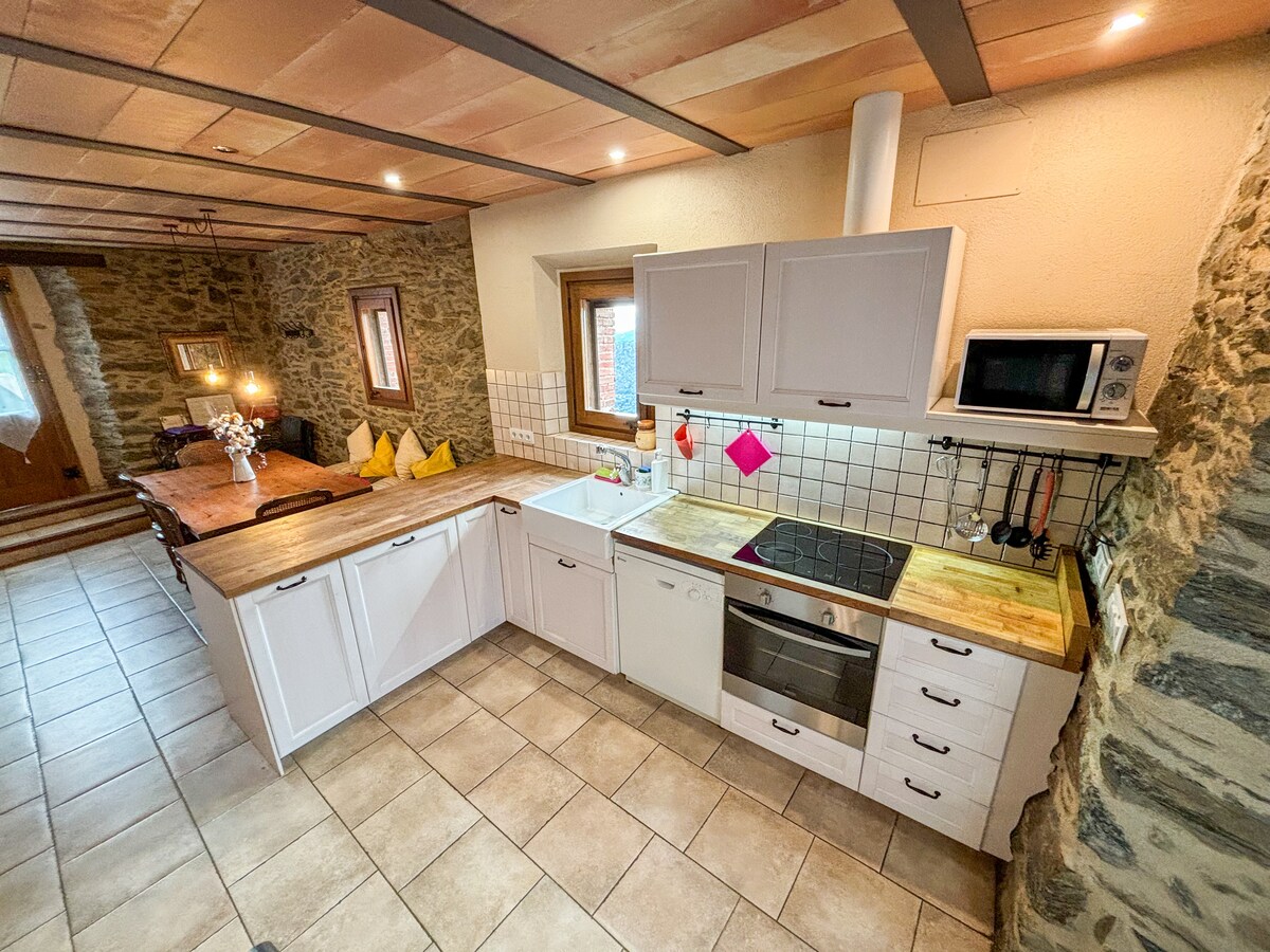 Belle maison du 17ème siècle rénovée, sur 3 étages de plus de 100m2. Perché à 1400m et orientée plein sud avec un grand jardin très fleuri et une vue époustouflante sur la vallée, le Canigou et faisant face aux massifs de la Carança. Idéal pour déconnecter! La Faune est omniprésente et facile à observer. Nombreux chemins de randonnés ou VTT partent directement de la maison. Notre hameau bénéficie d’un climat méditerranéen et se trouve à 40 minutes des pistes de ski et une heure de la mer.