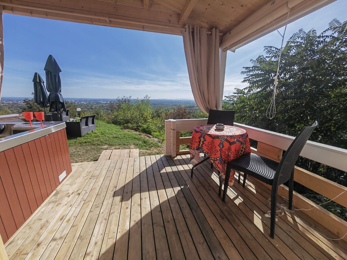 J'ai conçu et réalisé la cabane d'en haut pour vous offrir une parenthèse de rêve et de poésie naturelle. Construite avec des matériaux locaux et écologiques elle offre le confort nécessaire pour passer un agréable séjour. A l'extérieur contemplez la vue et la nature qui entourent le lieu, à l'intérieur laissez vous surprendre par une ambiance douce et romantique. Petit déjeuner offert servi directement a la cabane et il est possible de réserver une planche de produits locaux pour diner.