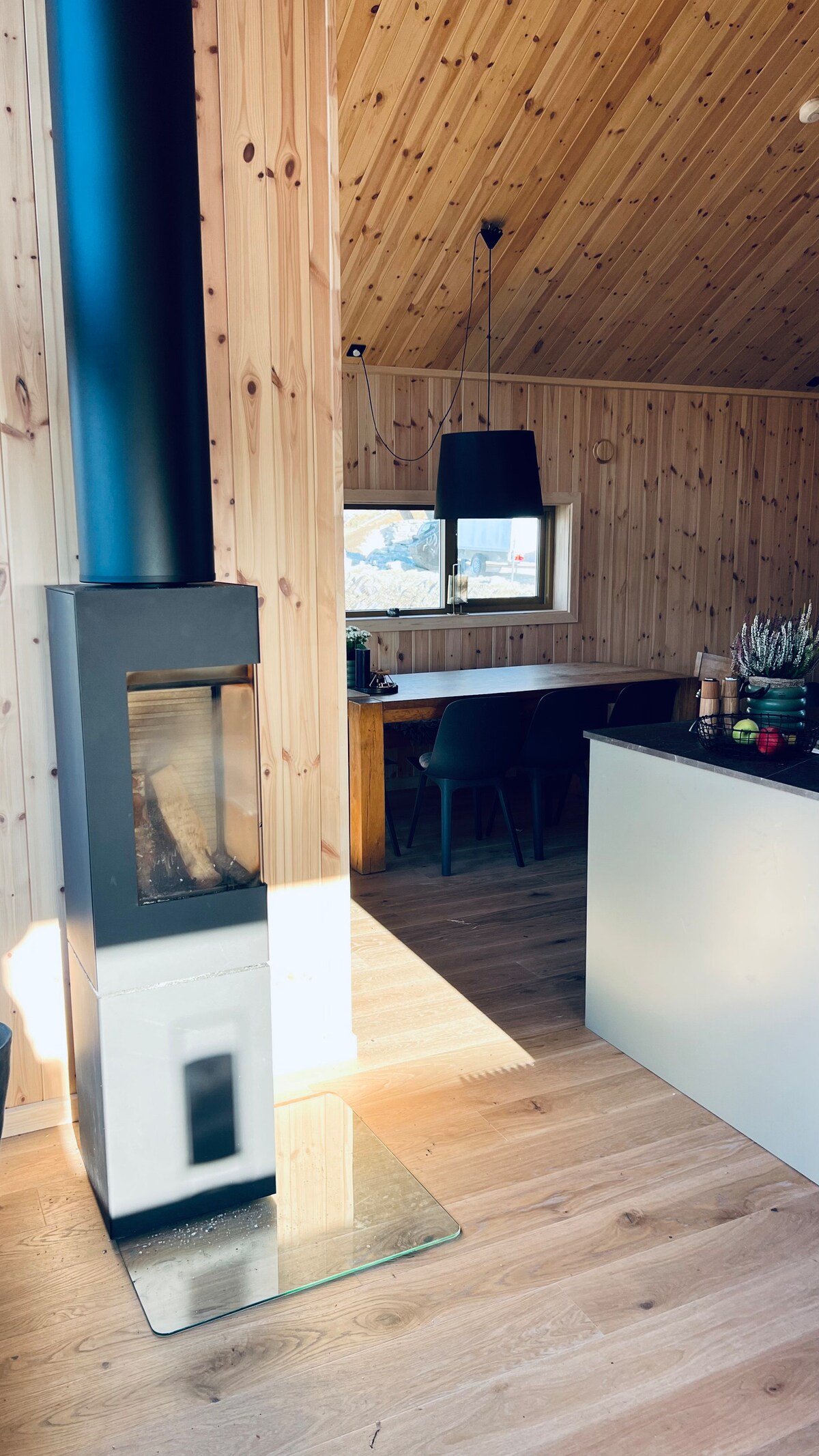 Modern cabin in Kvitfjell with panoramic view over Gudbrandsdalen. Open-plan kitchen, dining and living room with fireplace, TV and WiFi. 4 bedrooms and 1 bathroom + separate toilet. Outdoor wood-fired sauna, covered seating area and south-facing 40 m² terrace. Jacuzzi available for an extra fee. Large fenced outdoor area for activities and parking. No close neighbours. Only 600 m to the World Cup slope. Kvitfjell Station and the Olympic Express lift are both 1 km away. Easy train access.