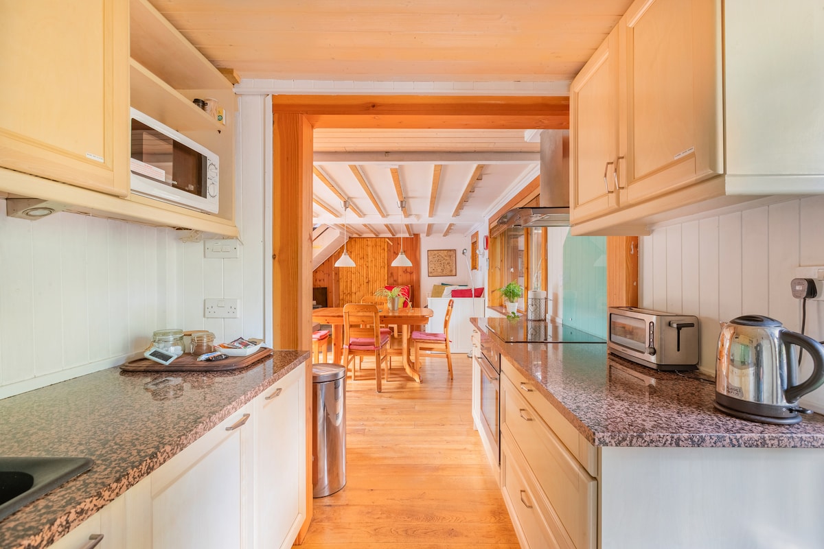 Passez vos journées dans une cabane à colombages confortable entourée de rhododendrons. Avec un poêle à bois, un jardin et des terrasses, vous aurez tout ce dont vous avez besoin pour un séjour relaxant. Sortez de la porte du jardin et vous entrerez dans la forêt de Ringwood avec une piste cyclable, le parc national de Moors Valley, un terrain de golf et un lac. Un trajet de 5 minutes en voiture vous emmènera à la ville commerçante historique de Ringwood. Allez vers l'est et vous atteindrez le magnifique parc national de New Forest ou dirigez-vous vers le sud vers les plages de sable fin de Bournemouth.