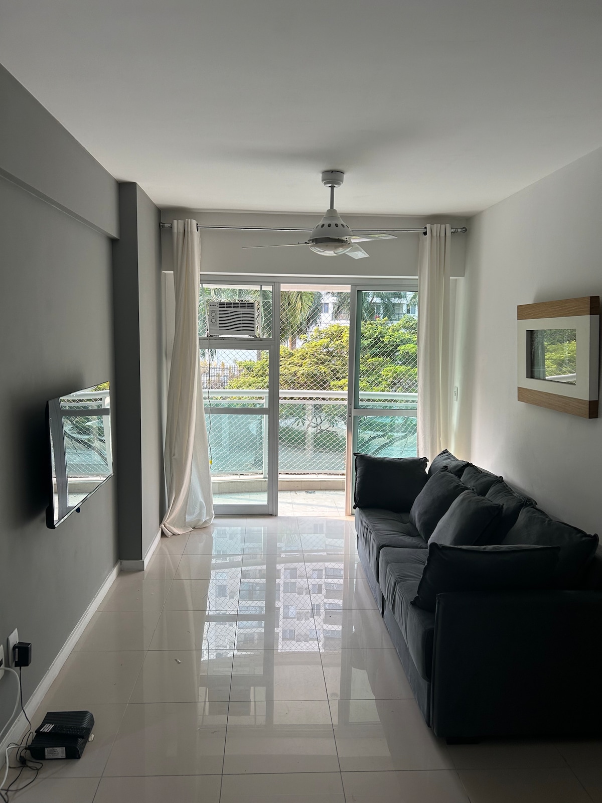 Appartement de charme et confortable, idéal pour les familles ou les amis. Il y a 2 chambres (suite queen size + double) et un salon avec un canapé-lit, tous avec climatisation, Smart TV et un grand balcon lumineux. Cuisine complète avec lave-linge et sèche-linge, réfrigérateur duplex, friteuse à air, cafetières (électriques et Nespresso). Wi-Fi rapide et sèche-cheveux disponibles. L'emplacement est stratégique : à seulement 5 minutes de Farmasi Arena, Parque Olímpico, RioCentro et Projac, et à 10 minutes des plages de Recreio, Reserva et Barra da Tijuca.