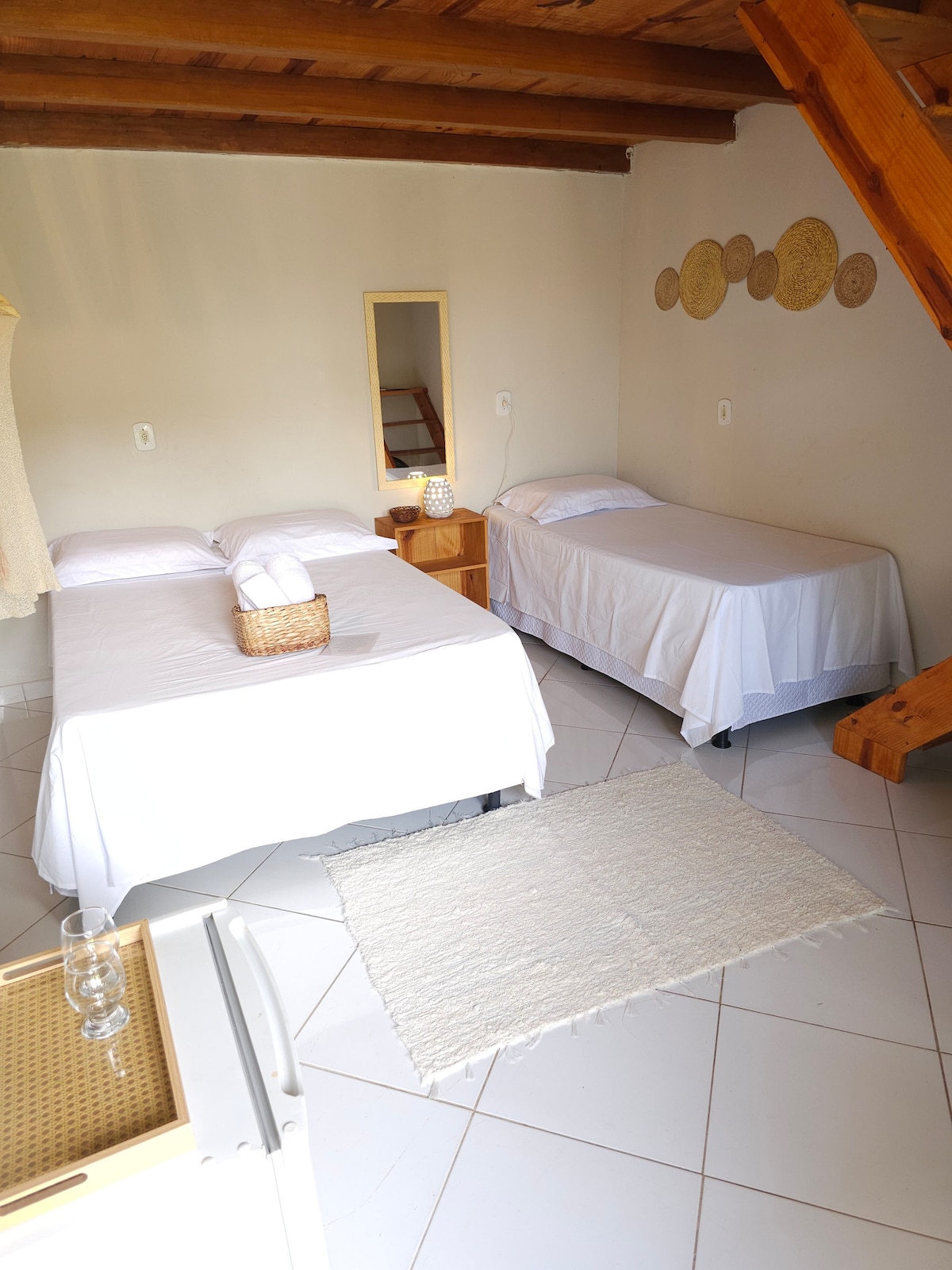 Bungalows récemment construits pour jusqu'à 4 personnes avec lit queen size, deux lits, linge de lit et serviettes, cuisine complète et ustensiles, climatisation, ventilateur de plafond, Wi-Fi et SmartTV 32". Inspirés des maisons de pêcheurs, nos bungalows allient charme et simplicité au confort et à une expérience unique, où vous vivrez des moments inoubliables. Situé sur la falaise de Corumbau à 300 m de la plage, nous sommes également proches du centre avec ses restaurants et ses marchés.