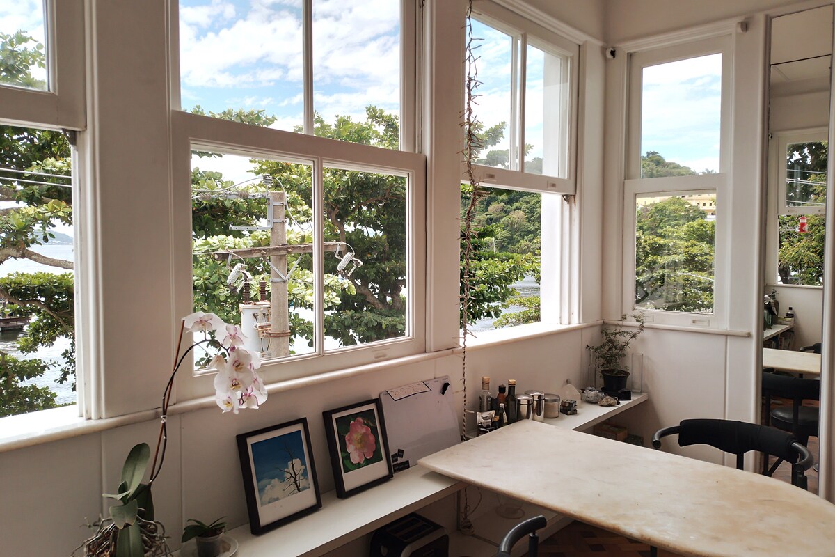 Appartement lumineux et aéré, vue imprenable sur la baie de Guanabara. Réveillez-vous avec le soleil du matin, un colibri sur la fenêtre, une brise fraîche et une vue magnifique. Au dernier étage d'une maison classée de 3 étages datant des années 1940, cet appartement est un petit trésor baigné de lumière naturelle. Une chambre confortable avec un lit Queen Size, une cuisine équipée et un colibri à la fenêtre. Un mélange d'ancien et de nouveau, entièrement planifié par un designer allemand qui crée un environnement exclusif et élégant.