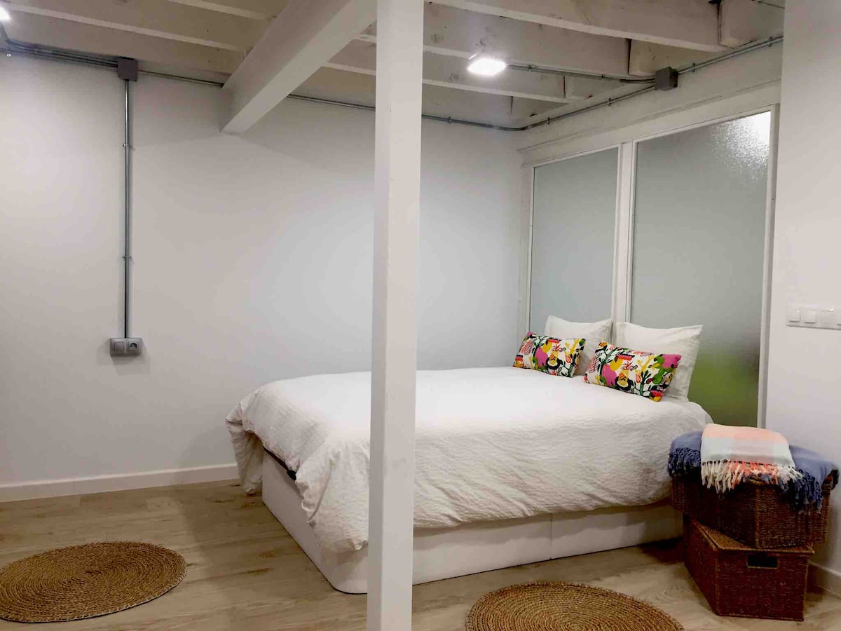 Moderno estudio a solo 10 min de Sevilla, ideal para disfrutar de la ciudad con la tranquilidad de un barrio residencial. Cuenta con cocina equipada, baño privado, WiFi rápido y aire acondicionado. Fácil aparcamiento gratuito en la calle, siempre disponible alrededor del edificio. Ubicado en Bormujos, junto al Parque de la Arquería, un supermercado Aldi y parada de bus con conexión directa al metro Ciudad Expo. Perfecto para parejas, viajeros solos o estancias de trabajo.