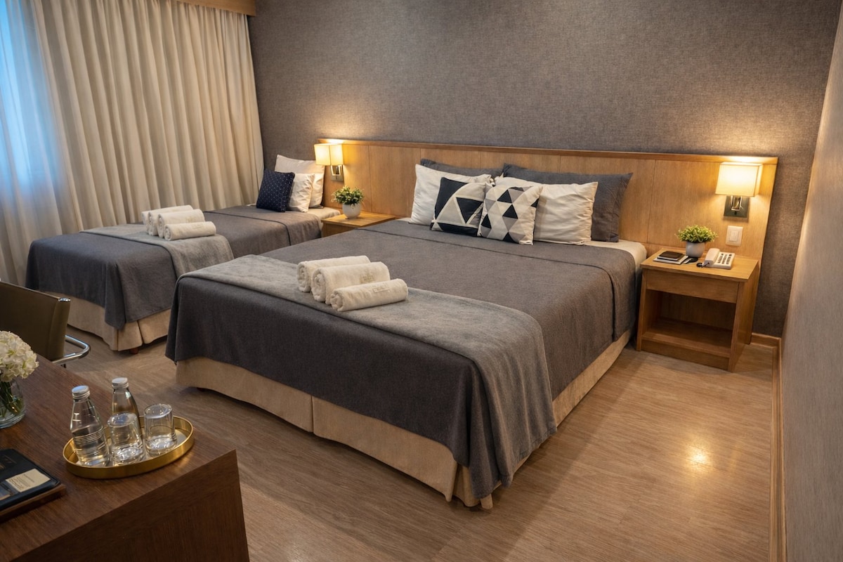 49m2, confortable, moderne et à proximité des plus grands événements tels que Rock in Rio, le parc olympique et Riocentro. Intimité totale pour deux personnes avec lit double Queen Size pouvant inclure un troisième invité sur demande. Nous avons une excellente infrastructure, réception 24h/24, petit déjeuner, restaurant, blanchisserie, piscine, jacuzzi, parking gratuit, etc. à côté du Map Band Shopping (Mc Donalds, Lojas Americanas, pharmacie, banques et autres commerces). Plages de Barra et Recreio à 20 minutes en voiture.
