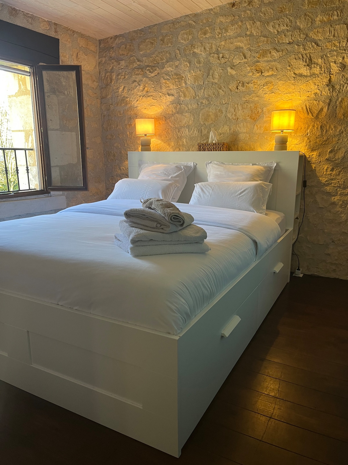 Séjournez en plein coeur de Saintes dans un cadre authentique et plein de charme. Porte Aiguière se situe au cœur du quartier historique piéton, idéal pour découvrir le riche patrimoine de la ville, arpenter ses ruelles et profiter de l'art de vivre en Charente. À deux pas du théâtre, des marchés, des restaurants, de la Charente, des musées, vous pourrez tout faire à pied! Vous logerez dans un appartement rénové avec des matériaux anciens, et apprécierez la vue sur le clocher de la cathédrale.