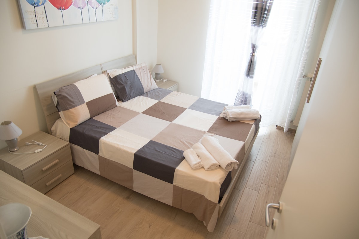Détendez-vous avec toute la famille dans ce logement calme, à 2 pas de toutes les commodités et à 170 mètres de la plage de Montesilvano. L’appartement au 2ème étage d’un petit immeuble (sans ascenseur) peut accueillir 4 personnes, il est recommandé pour 2 adultes + 2 enfants. Open space avec grande cuisine et accès au balcon et à la terrasse équipée de table et chaises. 1 chambre double et accès au balcon. 1 chambre double avec 2 lits simples. 1 salle de bain complète avec douche et lave-linge Pas de place de parking
