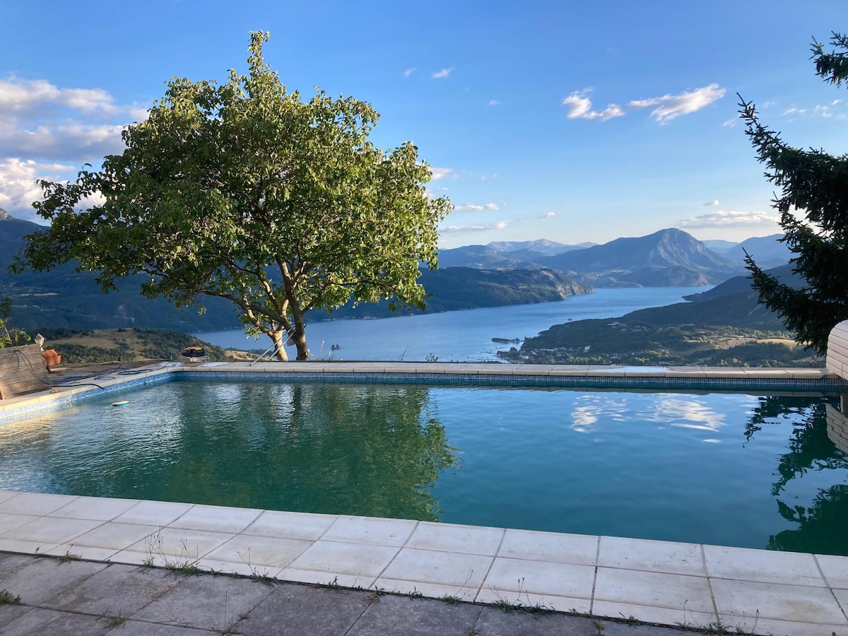 Magnifique maison de 160 m² avec vue panoramique sur le lac de Serre-Ponçon, au cœur d’un environnement naturel exceptionnel tout proche du lac, du parc des Ecrins. Cette maison spacieuse et lumineuse, répartie sur deux étages en 2 appartements, est idéale pour accueillir familles et groupes d’amis. • Grande piscine de 11 x 6 mètres • Sauna 4 places détente absolue • Jardin spacieux pour se relaxer ou partager des repas en plein air • Stationnements sur le terrain • Prestations de qualité