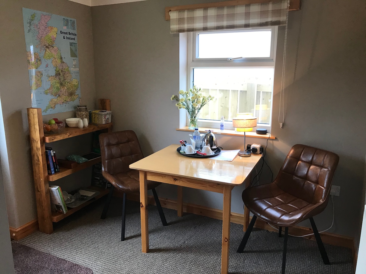 Le Byre est un studio unique converti à partir d'une grange et est parfait pour une pause paisible ou une escapade romantique ! Un matelas double confortable de qualité hôtelière dans un hébergement indépendant avec vue imprenable sur la mer et les îles et à quelques pas d'un magasin et des plages. Une petite kitchenette bien équipée avec micro-ondes, plaque à induction et petit four. Beaucoup d'eau chaude pour la douche. Un poêle à bois et 2 radiateurs. Emplacement idéal pour explorer.
