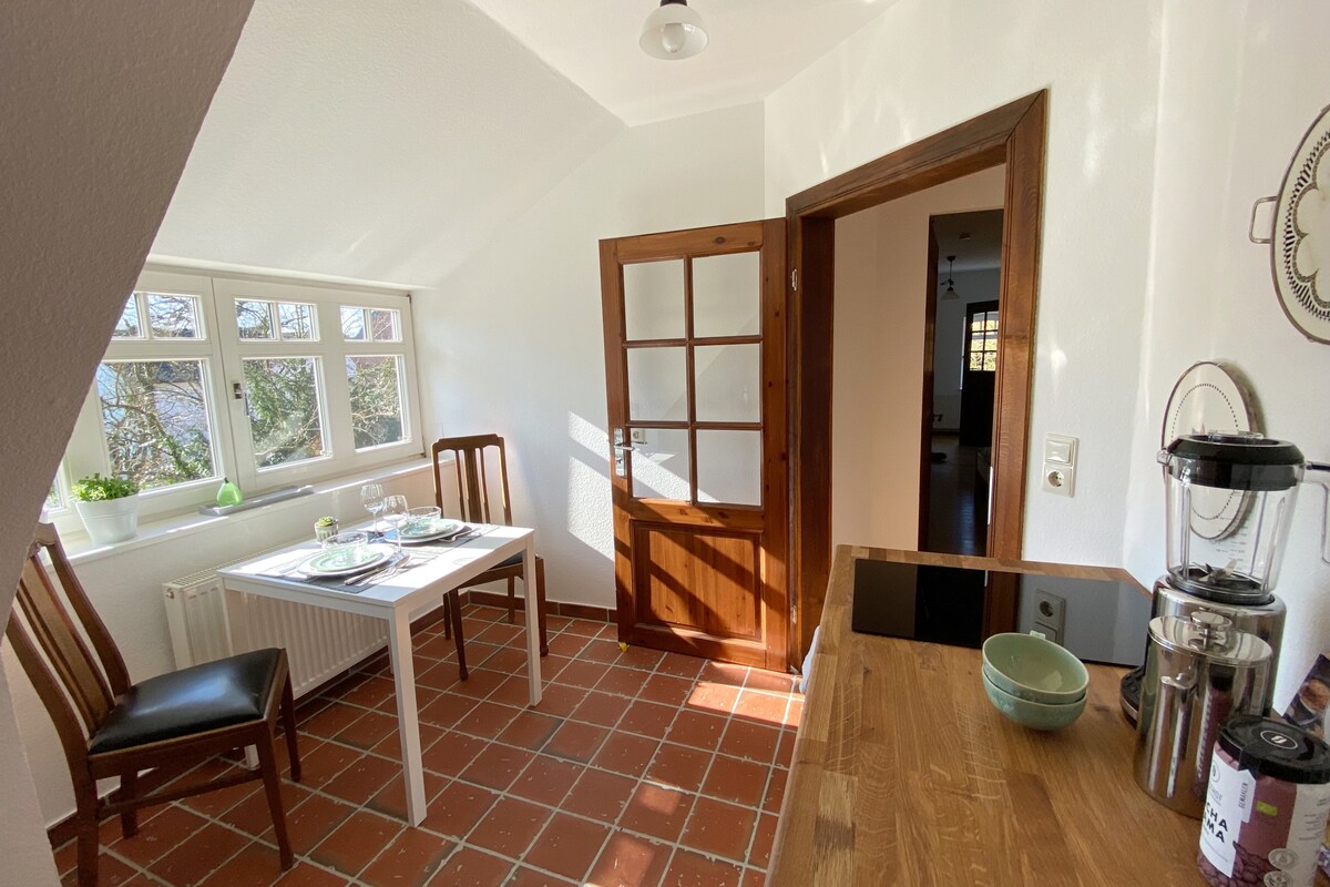 Profitez d'un séjour dans l'ancienne maison des peintres Fritz et Hermine Overbeck dans un appartement de 2 pièces meublé de manière moderne dans une maison multigénérationnelle conviviale et animée avec sa propre terrasse et un accès au jardin. L'appartement est situé au centre (possibilité de shopping, connexion S-Bahn à pied) et en même temps dans une oasis de verdure dans un endroit pittoresque (Schönebecker Aue, Bremer Schweiz). Nous invitons chaque voyageur à visiter le musée Overbeck. Deux places de stationnement sécurisées pour les vélos sont disponibles.