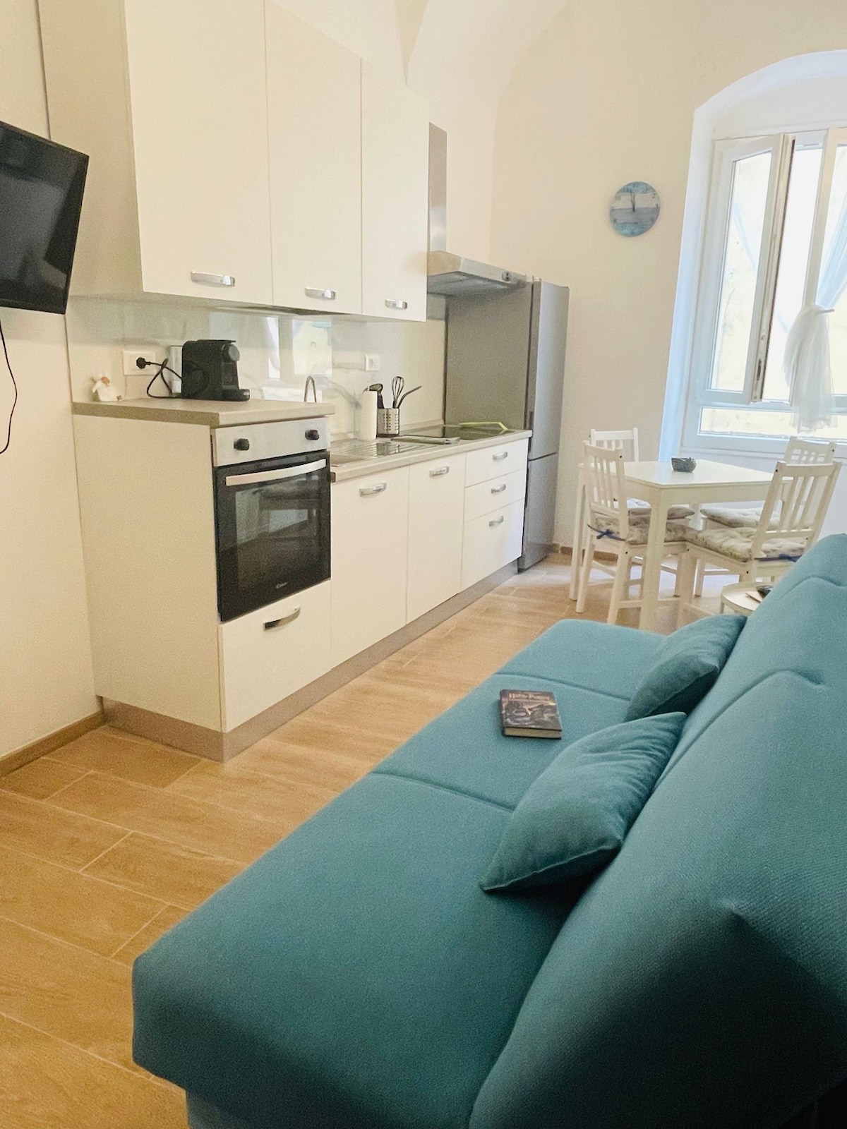 A soli 20 m dal mare, “La Porta sul Mare” è il rifugio ideale anche in inverno: il suono delle onde accompagna il tuo soggiorno mentre il riscaldamento garantisce comfort e calore. Perfetta per coppie e famiglie, offre una camera matrimoniale con pietre a vista, bagno moderno e open-space con cucina attrezzata, Smart TV e Wi-Fi ultraveloce. Situato in una zona tranquilla nel centro storico, a 100 m dalla pista ciclabile dei fiori: il rifugio perfetto per rigenerarsi.