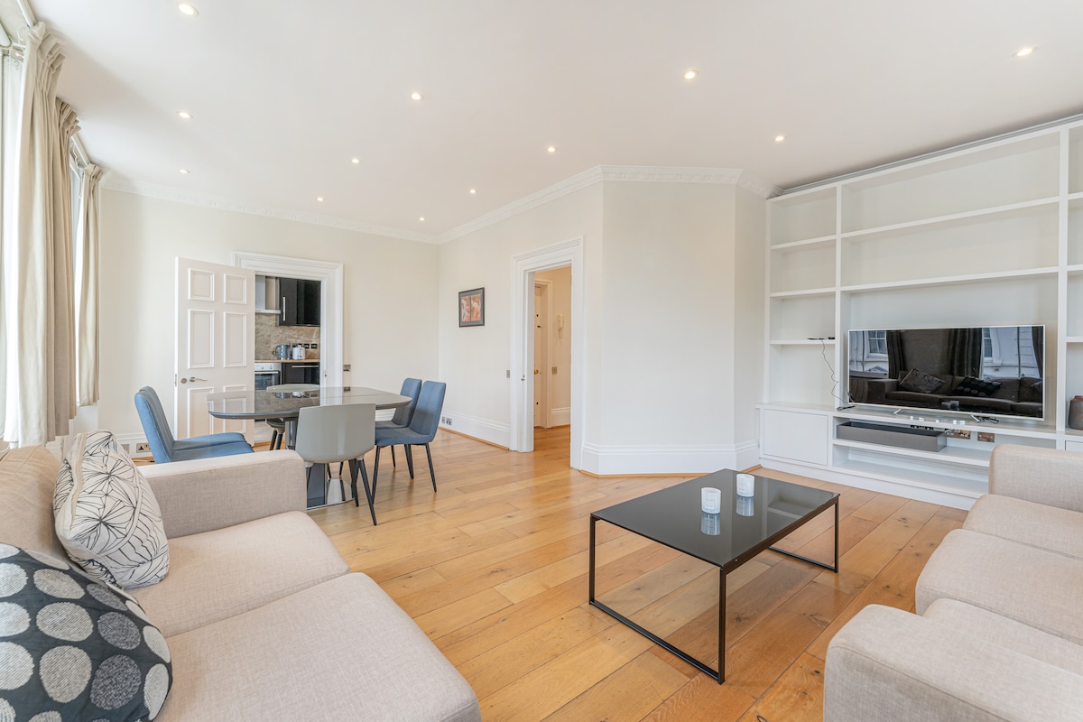 Un superbe appartement de deux chambres en face de Hyde Park, offrant une vue imprenable sur le palais de Kensington. Comprend un salon/salle à manger spacieux, une chambre principale avec salle de bains privative, une deuxième chambre, deux salles de bains et une cuisine entièrement équipée : four, réfrigérateur/congélateur, lave-vaisselle, lave-linge et sèche-linge, cafetière, four à micro-ondes, grille-pain et tous les ustensiles de cuisine essentiels. TV, ascenseur, vidéosurveillance et nettoyage toutes les deux semaines inclus. Lit supplémentaire (payant) et lit bébé (gratuit) disponibles. Draps et serviettes fournis.