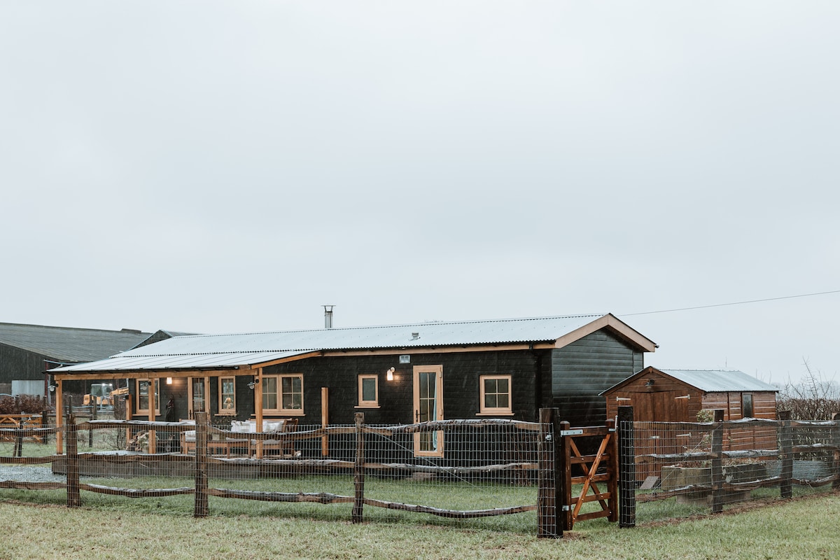 Chalet moderne d'une chambre, acceptant les chiens, situé en milieu rural avec de belles vues sur la montagne et des promenades. Le chalet peut accueillir jusqu'à quatre personnes car il dispose d'un canapé-lit, et est situé dans le parc de Lynwood qui est la maison de mon mari Dave et moi. La maison dispose d'un sauna que les voyageurs du chalet peuvent utiliser sur demande et à leurs propres risques. Nous ne facturons pas le sauna et ne fournissons donc pas de peignoirs ou de serviettes supplémentaires.