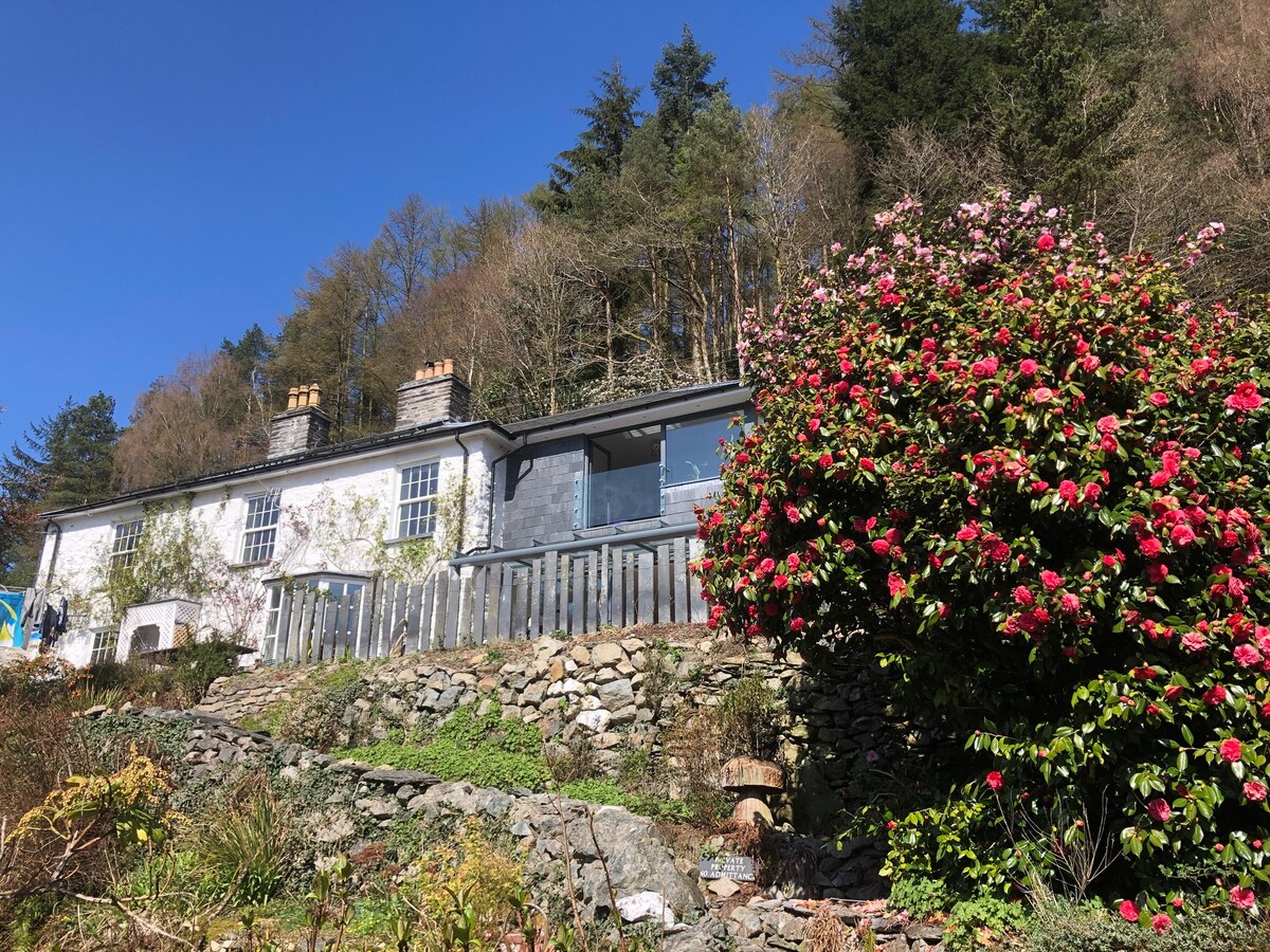 Maison récemment rénovée située dans le village gallois traditionnel de Dolwyddelan. Grand espace de vie avec portes pliantes sur le patio où vous pourrez passer votre soirée à observer les étoiles dans le luxueux jacuzzi en bois ou déguster un verre de vin devant le poêle à bois. Idéalement situé pour la randonnée en montagne, la plus longue tyrolienne d'Europe, le Forrest Coaster, le chariot de carrière ou les sentiers de VTT. Betws-y-coed est à 10 minutes en voiture ou à 2 arrêts de train pour les commerces et les restaurants. Les chiens sont les bienvenus.