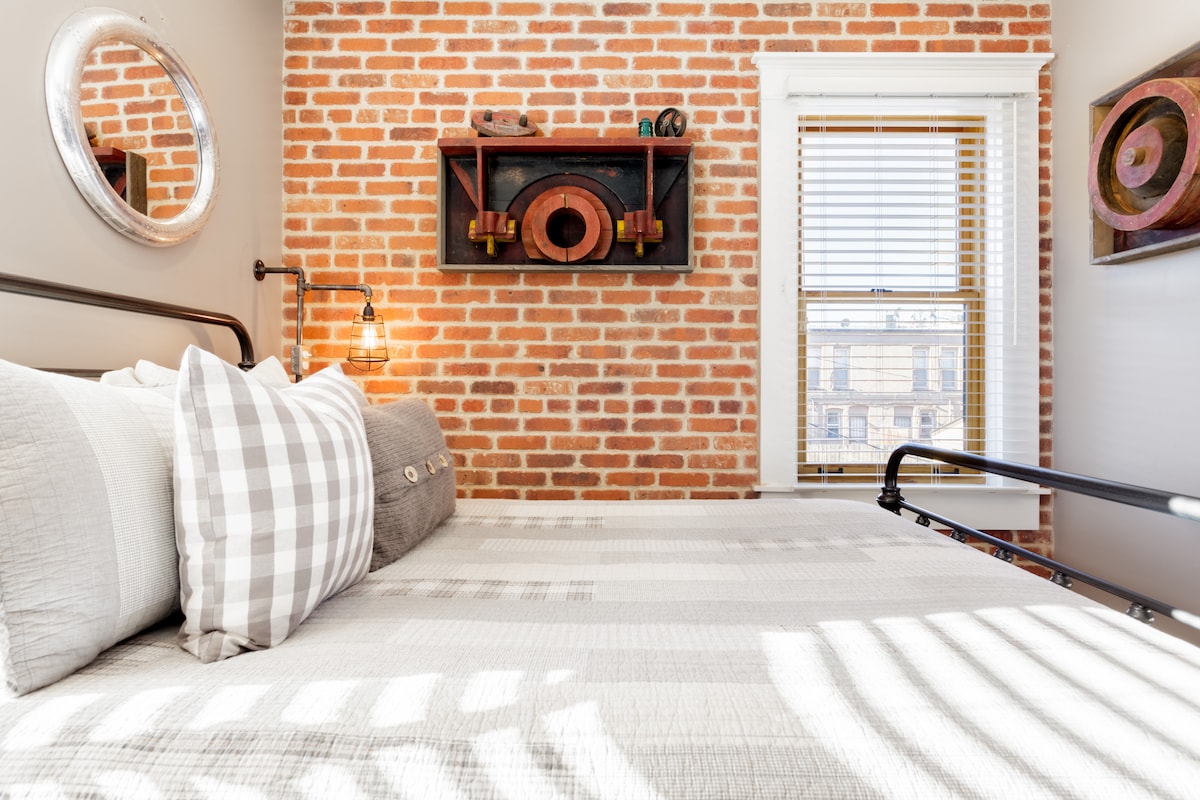 Loft d'artisan dans le quartier historique de Five Points avec briques rouges rustiques