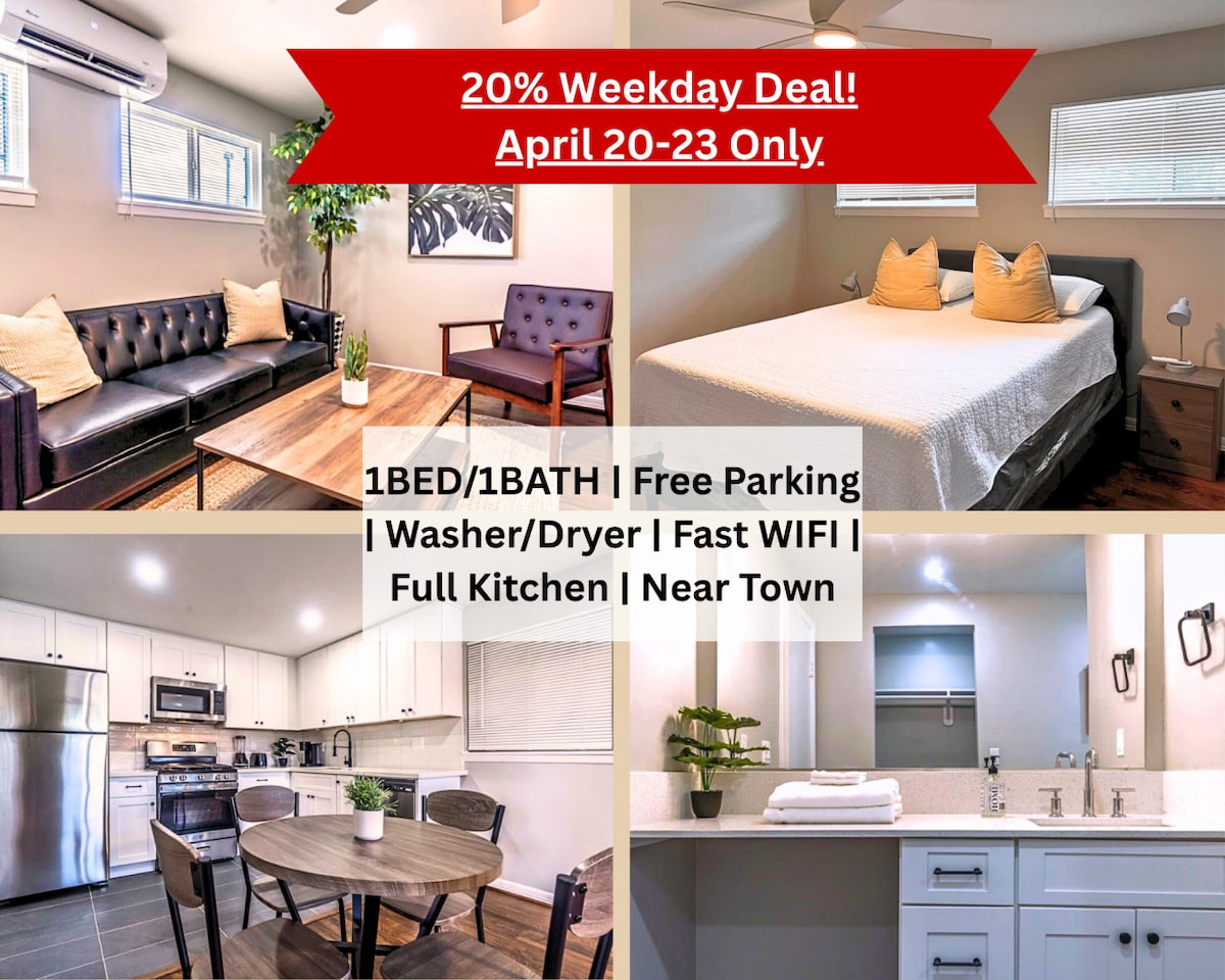 Profitez d'un séjour dans cet élégant appartement moderne de milieu du siècle de 1100 pieds carrés à Montrose. Il dispose d'une connexion Wi-Fi rapide, à deux pas de Westheimer et à proximité de la Galleria, du NRG Center, du Med Center et du centre-ville. Cela offre une expérience confortable et pratique qui capture l'énergie unique de ce quartier animé. Pendant votre séjour, je suis disponible 24h/24 et 7j/7 pour répondre à toutes vos demandes.