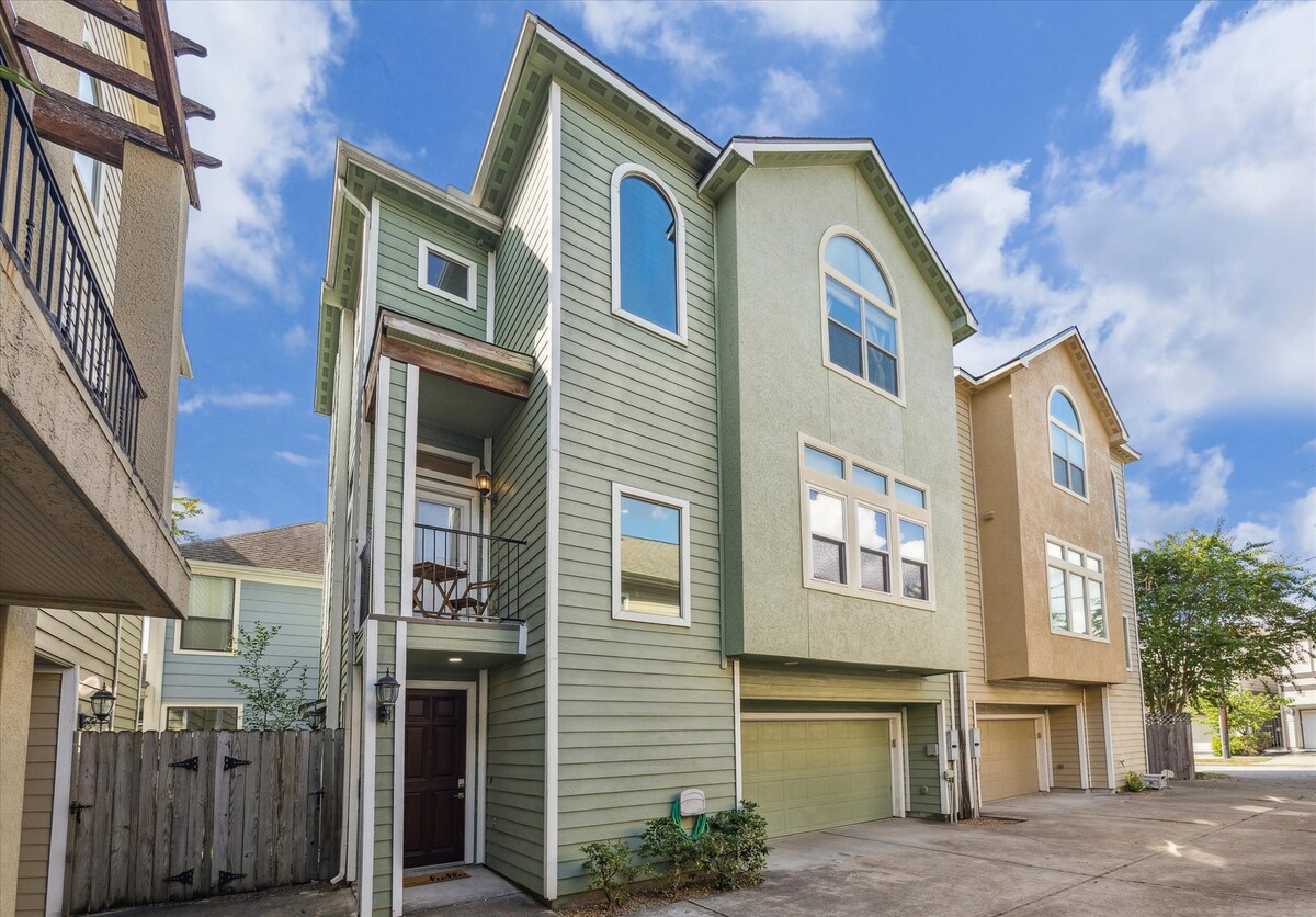 **DEMANDEZ LES RÉDUCTIONS POUR LONG SÉJOUR*** Maison de ville moderne et spacieuse de 3 étages située à quelques minutes du quartier de Galleria. Assurez-vous d'utiliser notre garage-gymnase unique et bien équipé et la cour arrière spacieuse. C'est la maison idéale pour que tout le monde se réunisse et profite d'une nuit de cuisine complète avec notre cuisine entièrement approvisionnée, pour préparer des cocktails et se glisser pour une soirée. La maison peut accueillir des séjours de courte et longue durée. Deux postes de travail disponibles avec connexion Wi-Fi rapide de 800 Mbps.