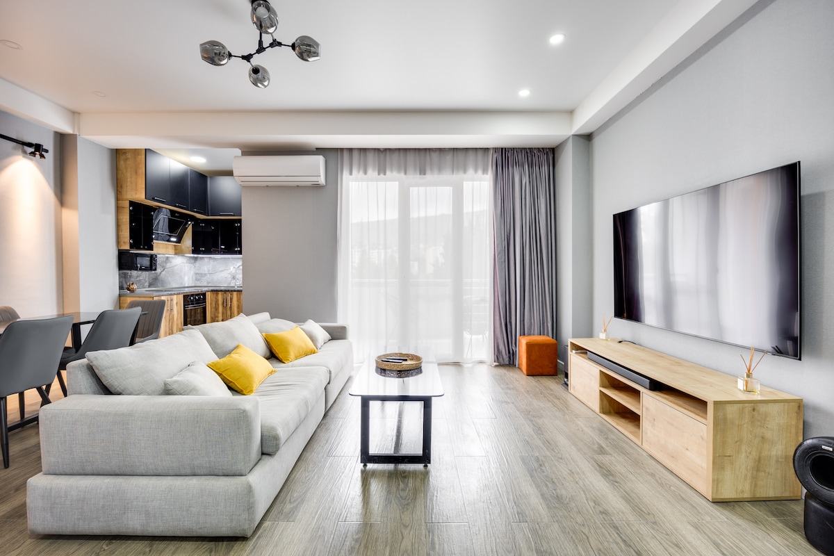 Ce logement a un style unique qui lui est propre, avec un grand contraste entre l'extérieur vintage des bâtiments historiques et l'intérieur moderne des appartements, les clients découvriront le meilleur des deux mondes. L'appartement est au cœur du centre-ville, situé à 2 min de l'avenue Rustaveli, juste derrière le bâtiment historique du Parlement. Tout en étant en plein centre, le quartier est très calme et paisible.