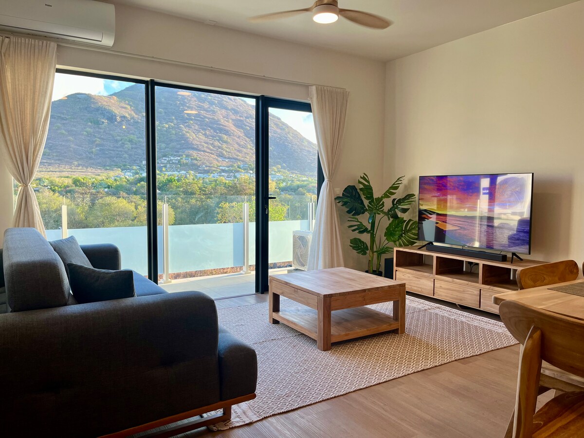 Évadez-vous dans une retraite Zen sereine à Flic en Flac, où luxe et tranquillité se rencontrent. Cet appartement moderne et cosy offre une vue imprenable sur la mer, idéale pour la détente. L’espace de vie ouvert, décoré avec des éléments Zen apaisants, crée une atmosphère paisible avec des meubles confortables et un balcon spacieux. Profitez de la piscine ou de la salle de sport, toutes deux avec vue sur la mer, et savourez ce havre de paix unique, conçu pour une relaxation totale.