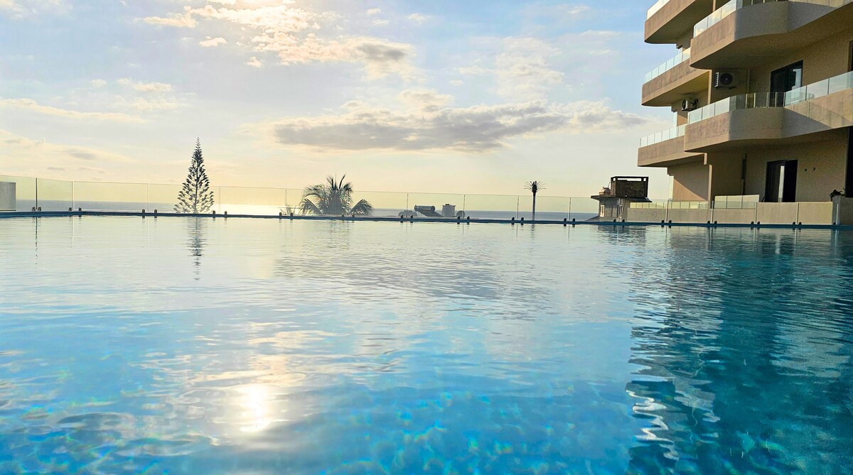 Ce penthouse de 2 chambres, contruit en 2025, est situé à quelques minutes de la plage et offre tout ce qui est nécessaire pour des vacances sans souci. Idéal pour les couples ou les amis en quête d'une escapade balnéaire élégante et relaxante. Le penthouse est situé à proximité des restaurants et des boutiques et offre un accès direct à une piscine sur le toit, ainsi qu'une terrasse privée offrant une vue imprenable sur l'océan et les montagnes, avec un parking souterrain et surveillance h24