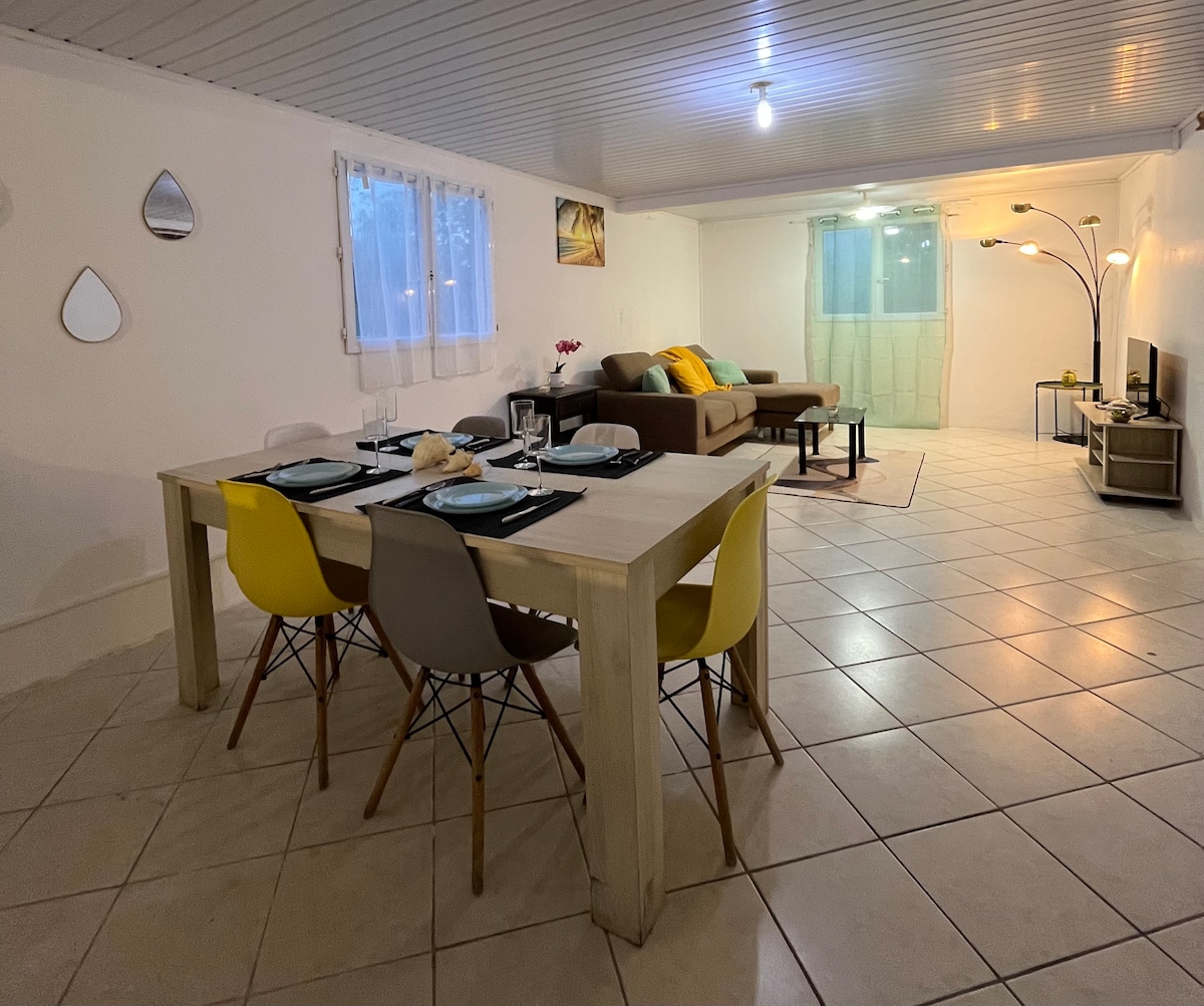 Situé au rez de chaussée de notre habitation, et totalement indépendant, pour vous permettre de passer d'agréables vacances en familles , dans un écrin de verdure. Vous apprécierez le calme, l'accueil chaleureux , le chant des oiseaux au réveil, la flore et les ballades vertes dans notre quartier. Les commerces et la plage le l'Anse Figuier sont à moins de 10 minutes et les plus belles plages du Sud à 20 minutes.