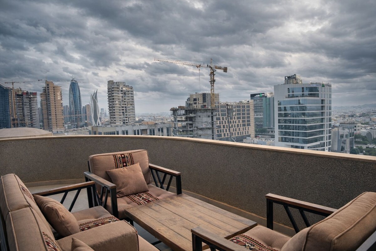 A modern apartment designed for an exceptional stay, located in one of Riyadh’s finest neighborhoods with a stunning view of KAFD. It features an outdoor seating area with a screen and projector for enjoyable evenings. For your comfort, the bed includes a high-quality 14cm extra layer. “We also offer event coordination services for special occasions (including cake and accessories) for an additional fee with prior booking, ensuring an unforgettable experience “