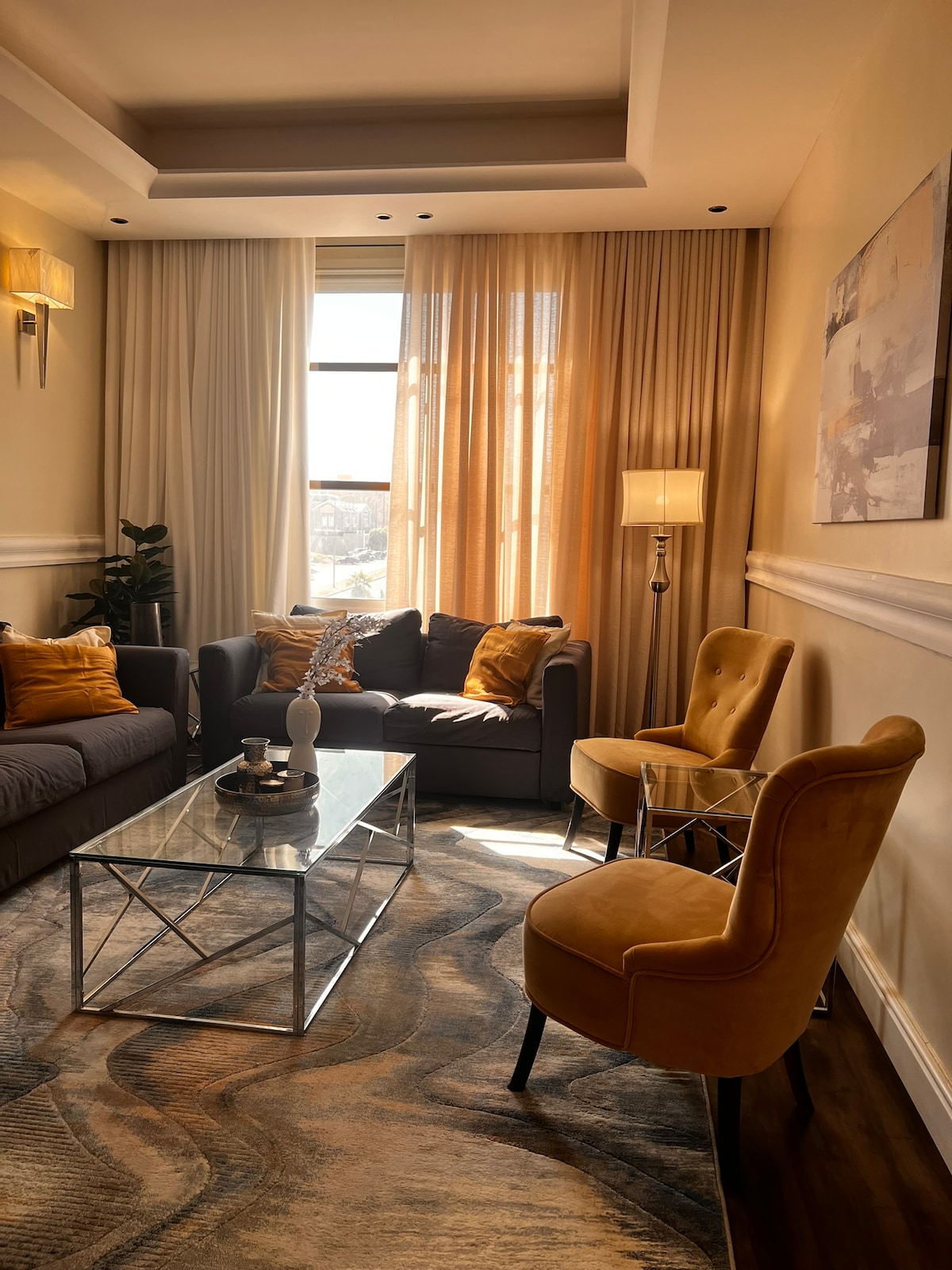 Un studio luxueux au design moderne et élégant, situé dans le quartier d'Al Murooj, au nord de Riyad. Il se caractérise par sa tranquillité, sa proximité avec la station de métro et tous les événements tels que (le boulevard, le centre financier King Abdullah (KAFD), le Kingdom Arena (stade du club saoudien Al Hilal), la Kingdom Tower, la tour Al Faisaliah, le Riyadh Park Mall, le Riyadh Gallery Mall et bien d'autres), en plus de sa proximité avec tous les services et les cafés distingués.