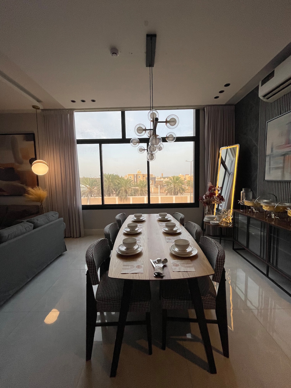 Caractéristiques de l'appartement : - Parking privé🚗 : vous offre la tranquillité d'esprit avec un parking privé pour votre voiture. - Salle de cinéma privée🎬 : profitez de vos films préférés dans une salle de cinéma dédiée avec haut-parleurs home cinéma. - Jacuzzi chaud et froid🛁 : profitez d'une expérience de détente unique dans le jacuzzi de l'appartement. - Cuisine intégrée🍽️ : contient des appareils italiens. - Séance en plein air🌌 : profitez du plein air. Distances des principaux points d'intérêt : ✅ Boulevard : 15 minutes ✅ Hôpital spécialisé King Faisal : 10 minutes ✅ Aéroport international King Khalid : 30 minutes ✅ Parc national : 15 minutes