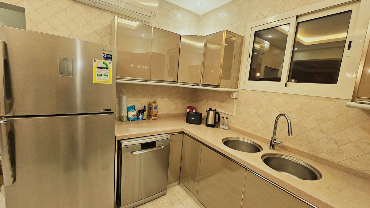 Appartement moderne d’1 chambre à Hittin, l’un des emplacements privilégiés de Riyad, à quelques minutes de Boulevard City et des meilleurs cafés. Conçu pour le confort et la simplicité, avec une arrivée autonome et un système intelligent complet. Comprend un salon confortable, une chambre agréable, une télévision intelligente de 85 pouces et une élégante cheminée électrique pour une ambiance relaxante. Cuisine entièrement équipée avec four, micro-ondes, plaque électrique, lave-vaisselle et lave-linge. Propre, élégant et idéal pour les couples, les voyageurs d'affaires et les séjours de courte ou de longue durée.