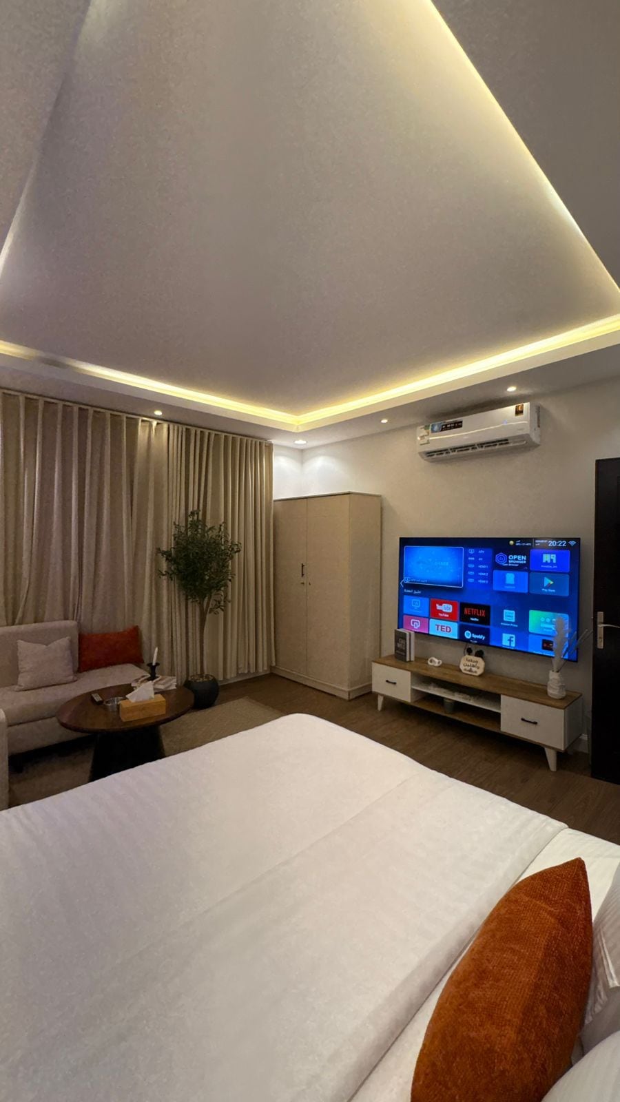 Studio de luxe pour vous offrir un confort et une intimité complets et est stratégiquement situé dans les plus beaux quartiers du nord de Riyad, près des monuments saisonniers et des loisirs les plus célèbres de Riyad. Également à proximité de : - Boulevard Riyadh à 15 minutes - Aéroport King Khalid 17 min - Promenade à Al Ghadeer à 10 min - North Ring Road 8 min Autres lieux et services tels que (Pharmacie - Supermarché - Barbier - Blanchisserie) *Entrée autonome * Le studio possède également : - Écran de télévision 58 pouces - Machine à café. - Désodorisant. - Wifi Nous vous souhaitons un bon séjour. Nous sommes toujours impatients de vous servir