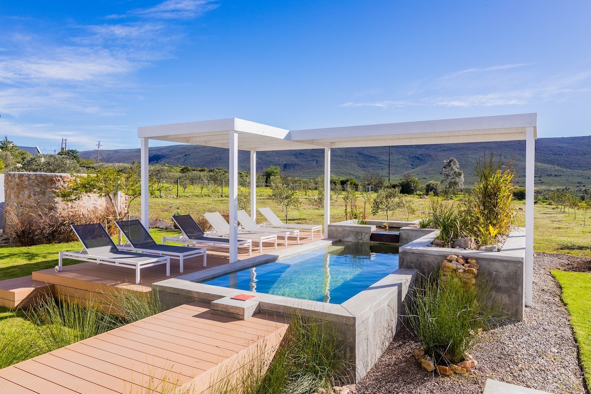 NEW 24/7 electricity/power due to 28 solar panels! The perfect place to escape the everyday hustle and bustle and enjoy luxury in and around the house in nature. Located on a 100 hectare, private nature reserve. It is based at the foot of a mountain, in the Cape Winelands near Tulbagh and Ceres. The villa offers 3 bedrooms, 2 bathrooms, a living room with fireplace, kitchen and utility room. It offers a private pool, sundeck, lounge- and dining area, garden and own, 1 hectare fynbos area.