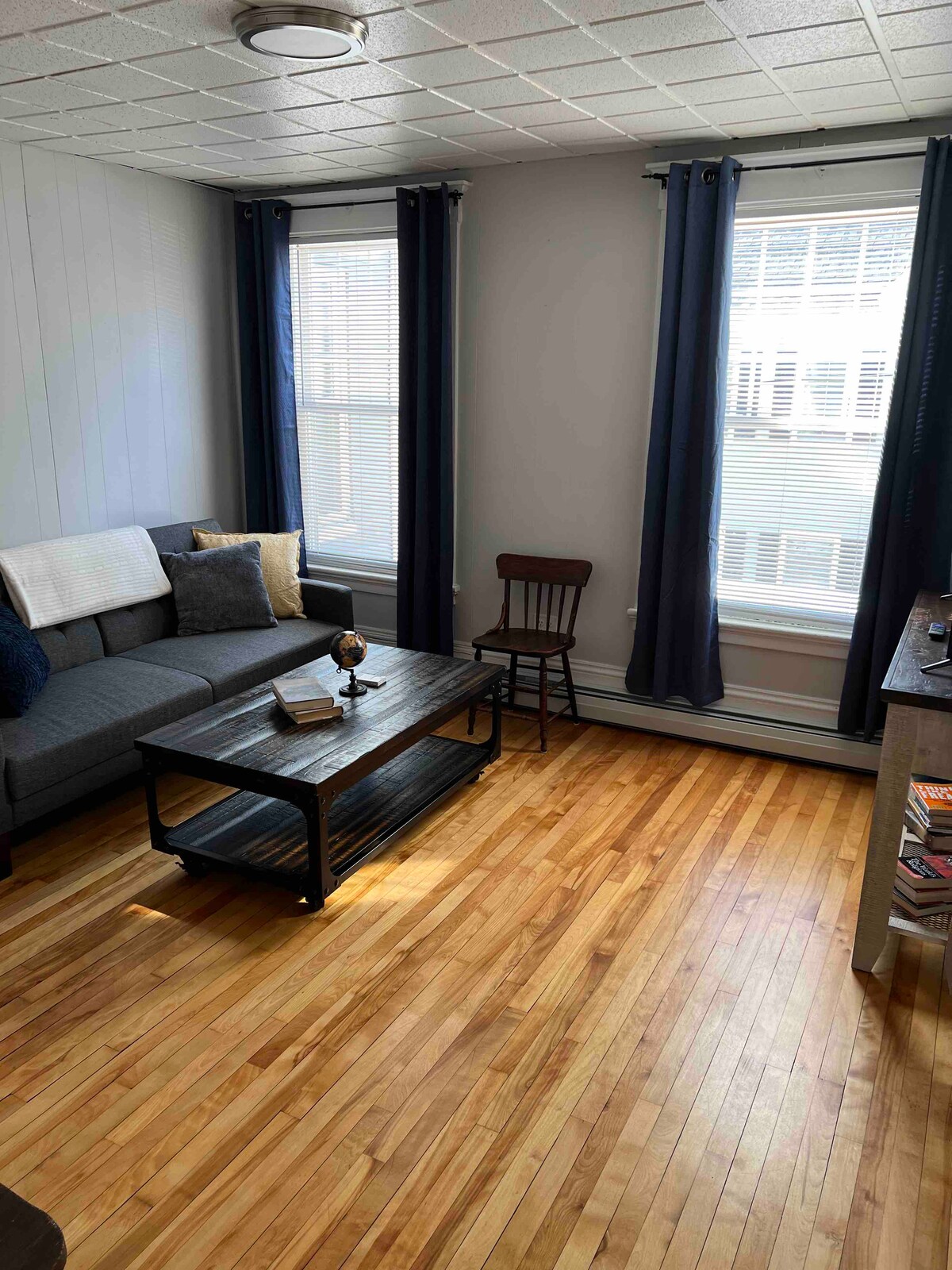 Notre maison est nichée à l'écart de Washington Street et semble isolée bien que nous soyons à distance de marche du centre-ville de Douvres. Notre maison a été construite comme un entrepôt il y a 100 ans et a été convertie en résidence en 2009. L'appartement dispose d'une entrée séparée du reste de la maison et dispose d'une terrasse privée. L'espace est lumineux et aéré, à la fois rustique et contemporain, avec de vieux planchers et des chevrons apparents. Nous sommes à quelques pas des restaurants et des bars, et du train pour Boston ou Portland, Maine.