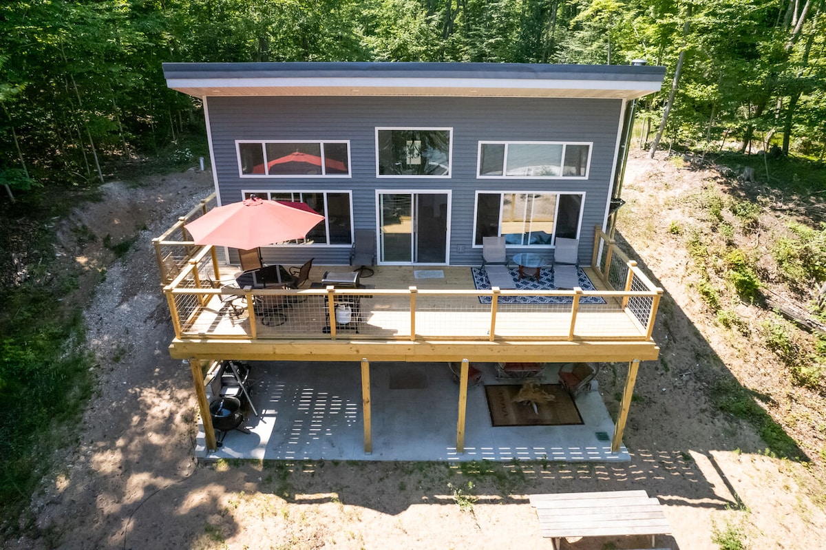 Clean furnished Munising Bay front view. 100ft. off water. Our home has high speed fiberoptic internet, satellite and netflix. Cabin is furnished with linens, full kitchen and fire ring in the back yard. Washer and dryer ins basement. Separate tv's feeds up and down. Propane bbq on deck. Pets must be requested at booking. EV and diesel vehicles are charged $10 a day to plug in. No guests can be added later. Thank you kindly.