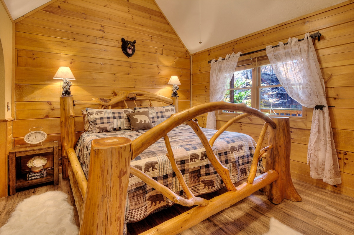 ❗️ APPEL À TOUS LES COUPLES ❗️ ★ La VUE IMPRESSIONNANTE SUR LA MONTAGNE depuis votre patio privé et votre jacuzzi ★ Évadez-vous dans cette belle cabane en rondins pour une lune de miel, un anniversaire, une retraite ou une escapade spéciale parfaits ! Réveillez-vous avec un café du matin et une vue panoramique sur les montagnes, et détendez-vous dans votre jacuzzi privé au coucher du soleil. Profitez d'une partie de billard et terminez votre soirée en vous relaxant dans votre jacuzzi en forme de cœur ! À quelques minutes des attractions de Pigeon Forge !
