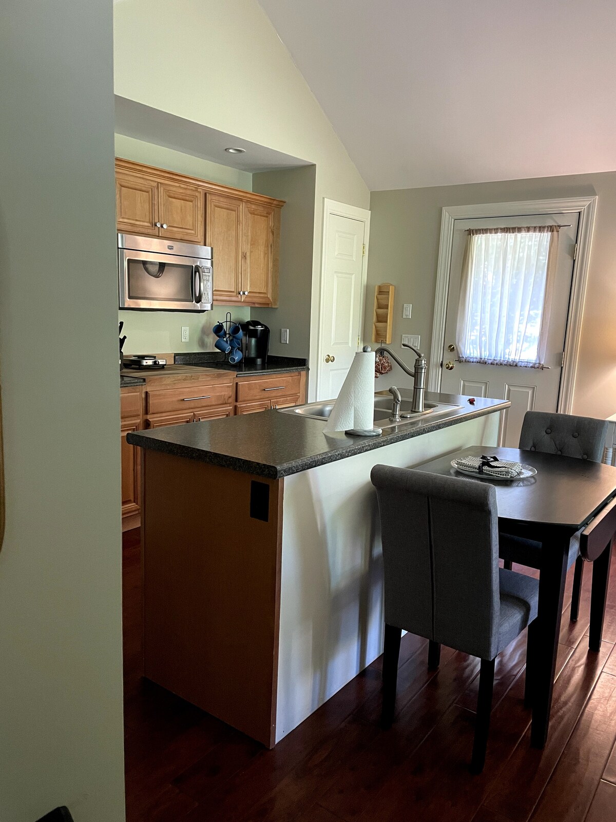 Luxueuse maison de charretier au-dessus de la grange. Cuisine haut de gamme, comptoirs en granit, casseroles et poêles All-Clad. Situé sur quatre acres isolés avec intimité et faune. Nouvelle construction en 2020. La propriété se trouve sur une route non pavée « historique/de conservation » entretenue par le canton datant de 400 ans, de la naissance de notre nation. Il y a une zone faunique de 450 acres de l'autre côté de la route et sept milles de sentiers à partir de la porte d'entrée. À quelques minutes de Portsmouth, de l'Université du New Hampshire et du centre-ville de Dover.