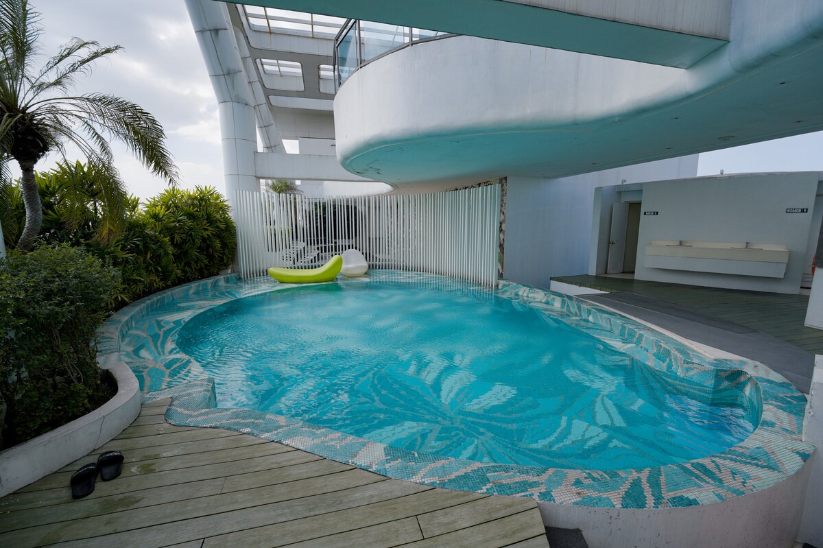 La suite 2 chambres la plus incroyable des Milano Residences avec une vue magnifique sur la ville ! Patio ultra privé avec piscine privée ! (Nous vidons et nettoyons la piscine pour chaque réservation !) Profitez d'une connexion Internet rapide/Netflix tout en profitant confortablement du vaste espace (100 m²) que ce logement a à offrir. L'autre piscine et le sauna partagés en bas sont disponibles du mardi au dimanche, de 7h à 19h. La piscine sera fermée pendant la journée de nettoyage (lundi).