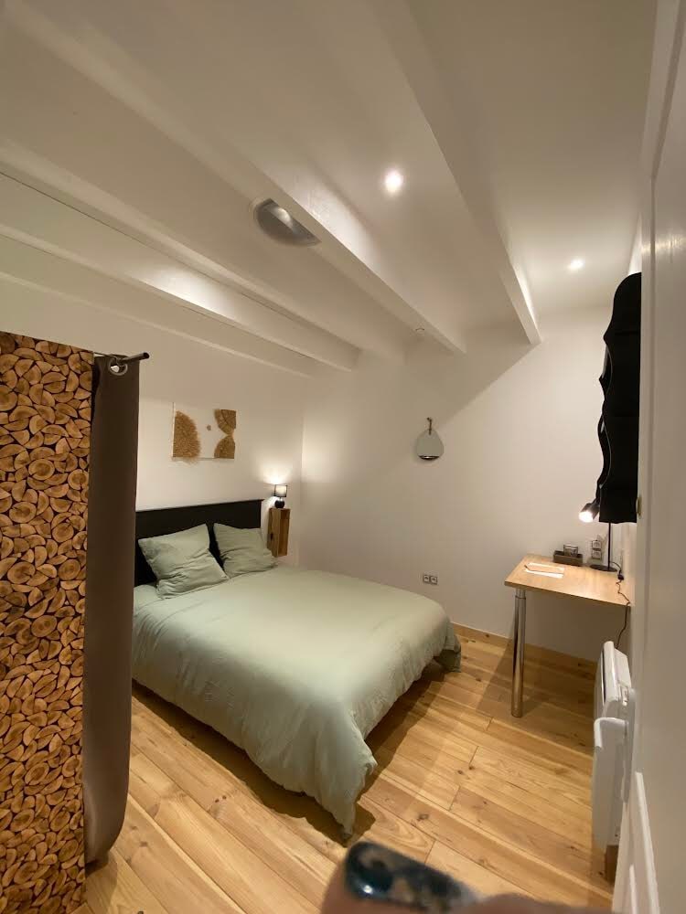 Au cœur du vieux village, vivez l’expérience d’une presque cabane, havre de paix et de sérénité ! Ce logement, lové au fond de notre patio intérieur, vous accueille dans un écrin de verdure. Profitez d’une halte rafraîchissante dans ce jardin luxuriant, où le calme règne. Au RdC, l’espace salon-cuisine, chaleureux et fonctionnel, est équipé pour votre confort : kitchenette (frigo, micro-onde, plaques électriques, cafetière filtre, vaisselle...) et ambiance bohème vintage pour une détente cosy.