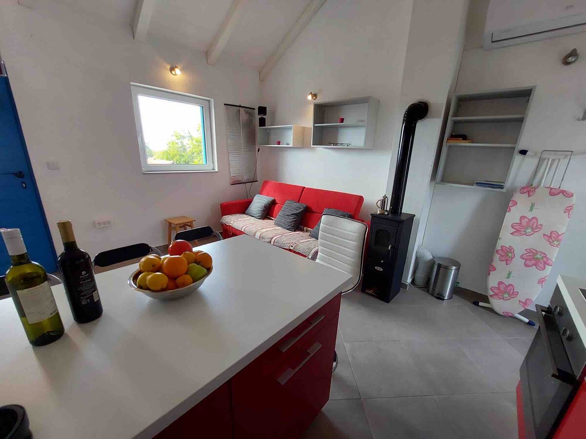 Bienvenue à MarOli Stone au rez-de-chaussée de la maison Maroli, idéalement située pour l'intimité mais à 0,5 km du centre-ville. Profitez de la piscine commune de la cour, de la cuisine extérieure et du parking. Maroli Stone propose deux chambres, une salle de bains et un salon confortable relié à une cuisine entièrement équipée avec un réfrigérateur, un lave-vaisselle, une plaque de cuisson, un four à micro-ondes, une cafetière et une bouilloire. Montez sur la terrasse pour profiter de l'ambiance de la cour et de la belle petite piscine. Découvrez le confort et la joie chez nous.