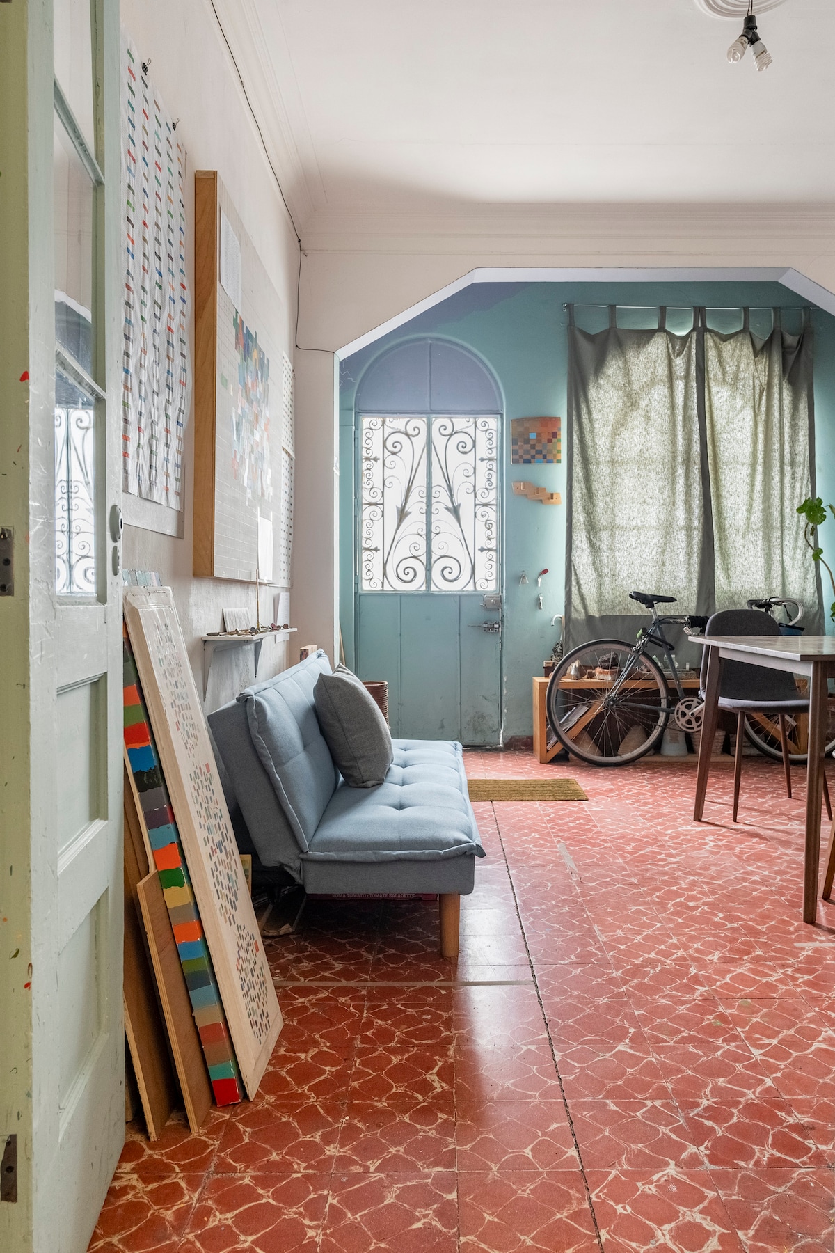 Maison ancienne dans un quartier sûr pour se promener dans la CDMX, je vis avec ma femme Andrea et 2 petits enfants ! Nous avons un chat et un chien. Entrée indépendante par le salon par un escalier un peu étroit qui atteint le patio extérieur et se connecte avec un escalier en colimaçon à la chambre. Nous avons une salle à bagages au rez-de-chaussée, la chambre dispose de la télévision, d'une connexion Wi-Fi, d'une kitchenette, d'une salle à manger extérieure et d'une salle de bains. Terrasse idéale pour se détendre et lire dans le hamac. Emplacement idéal à Condesa plein d'endroits où se promener !
