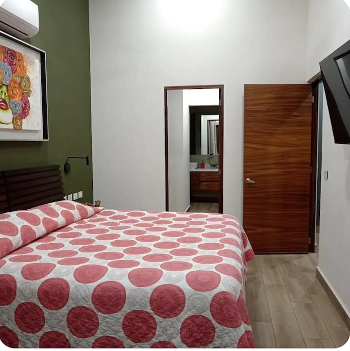 Chambre privée avec salle de bain et climatisation, transport à proximité