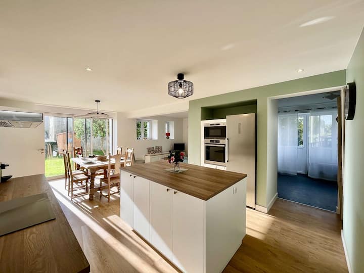 Dans cette maison au grand confort, tout a été pensé pour que votre séjour soit une réussite : des chambres baignées de lumières, une cuisine généreusement équipée, une buanderie avec lave-linge et sèche-linge, un garage pour les vélos, un barbecue grand format et une grande pièce principale où tout le monde aimera se réunir.