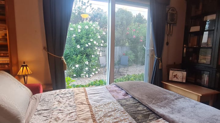 Retraite avec bibliothèque et jardin privé avec salle de bain attenante