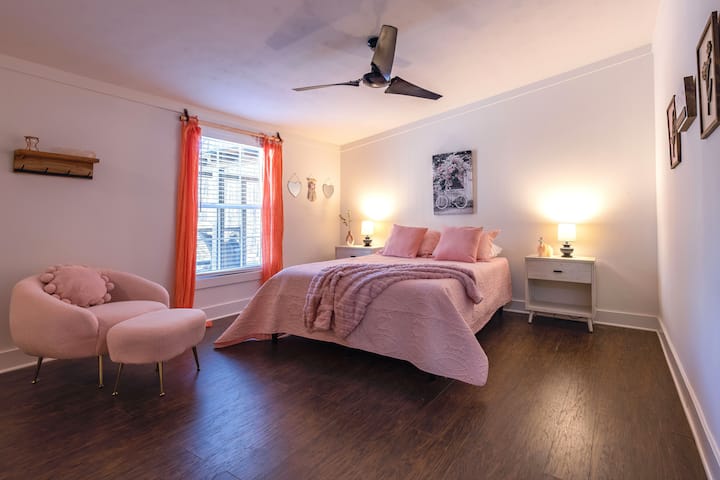 Chambre rose : lit Queen