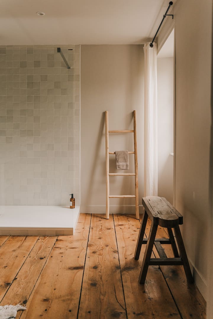 Confort et Vue : La chambre est équipée d'un lit double (160x200) invitant à des nuits paisibles. La salle de bain privative et spacieuse est équipée d'une grande douche à l'italienne, offrant un espace de détente et d'intimité. Depuis La Dormance, profitez d'une vue paisible sur le jardin, offrant une connexion directe avec la nature.