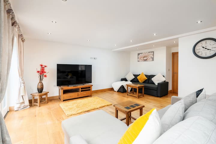 Jouez dans la salle de jeux avec piscine et baby-foot. Avec un parking pour 6 véhicules maximum et un pub primé à la porte, réservez dès maintenant sur Airbnb pour une escapade inoubliable !
