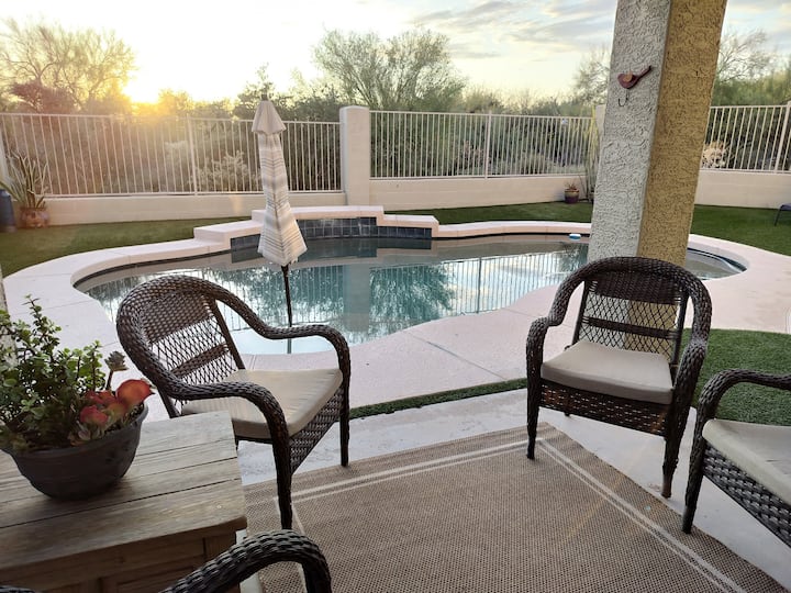 Vue sur le désert de Cave Creek et piscine chauffée