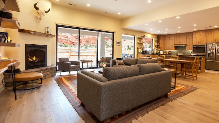 Détendez-vous dans notre oasis sur le toit de l'observateur d'étoiles, parfaite pour les familles ou les couples qui recherchent de l'espace, de la sérénité et des vues inoubliables. Cette maison de luxe adaptée aux animaux de compagnie à La Estancia, Kanab comprend 3 chambres, 3 salles de bain, une cour entièrement clôturée avec barbecue et foyer, ainsi qu'un accès à des piscines intérieures/extérieures, des jacuzzis, une salle de sport et un clubhouse. Que vous travailliez à distance ou que vous vous réunissiez autour du brasero sous les étoiles, Desert Willow vous offre des souvenirs et un confort que vous chérirez. Réservez maintenant pour des aventures dans la roche rouge et une observation paisible des étoiles.