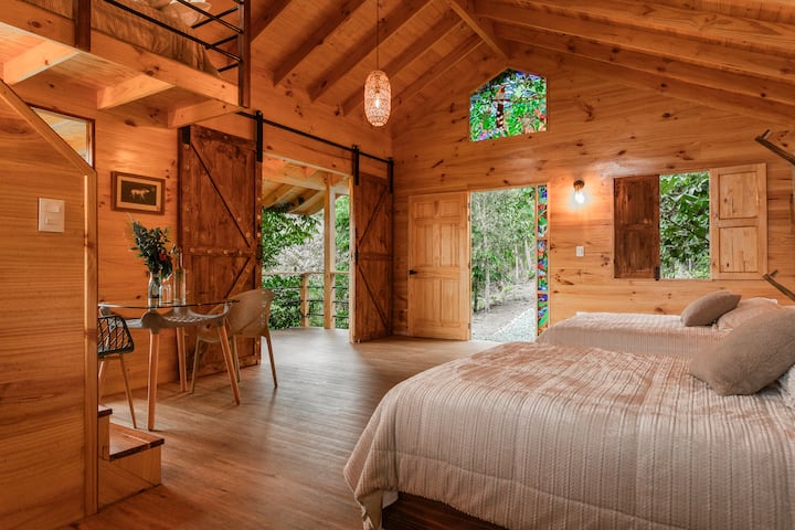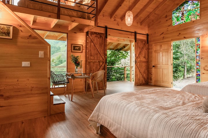Nous sommes Gina Marcela et Luis Fernando, amoureux de la nature, de la conservation et des créateurs de Tominejo Ecolodge, une réserve d'espèces indigènes et de la faune. Nous proposons un hébergement dans des maisons confortables dans les arbres, des visites de sentiers naturels, l'observation des oiseaux, l'intégration avec la terre et la pleine connexion avec l'environnement naturel.